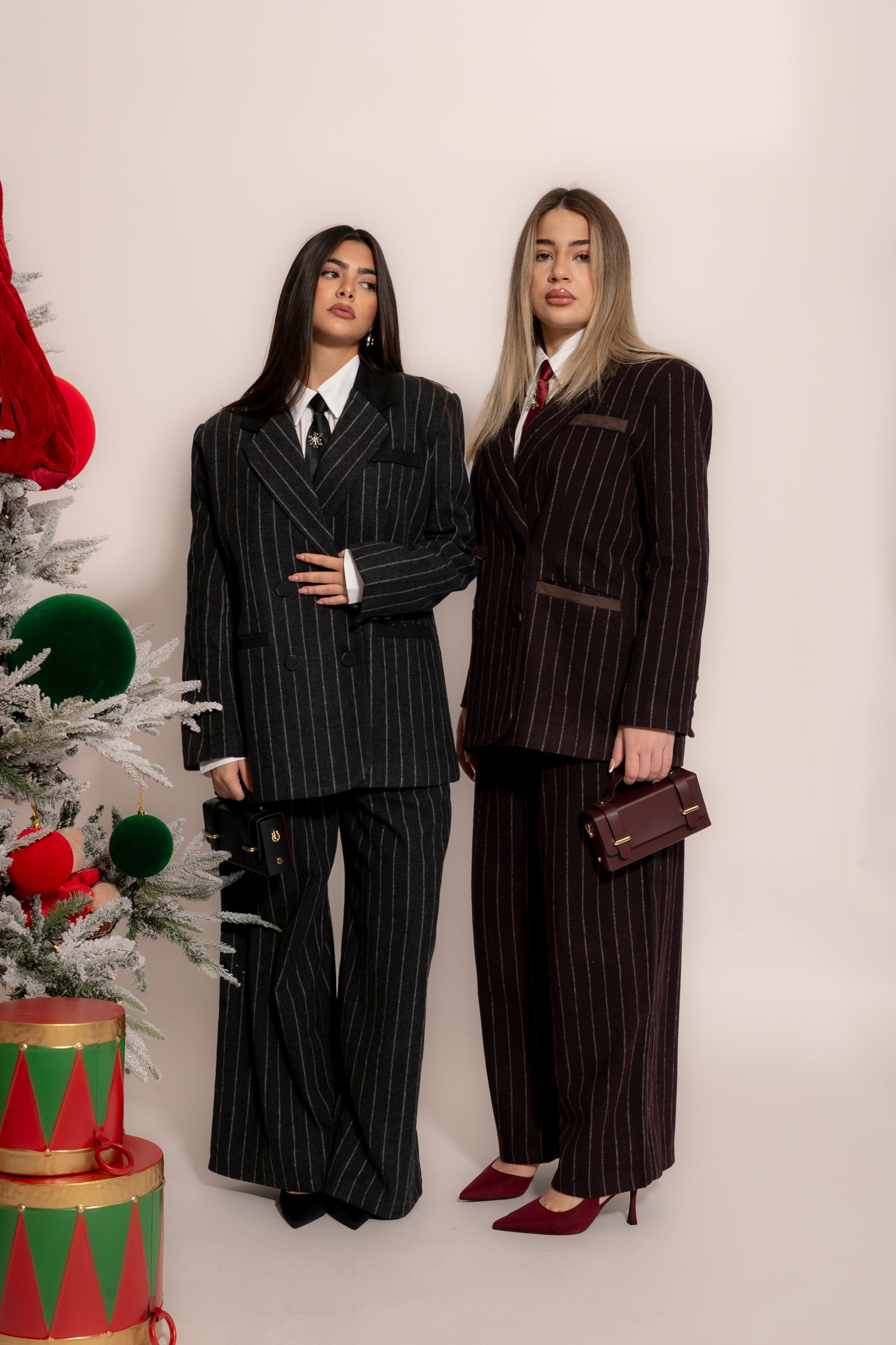 Tailleur con paillettes laterale e cintura